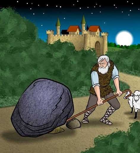 Kad je stavio polugu ispod tog ogromnog kamena, bio je iznenađen kad je otkrio da uopće nije tako velik kako se doimao i da ga je mogao lako razbiti s maljem. Kad je prikupljao komade razbijenog kamena, morao se nasmiješiti prisjećajući se svih nevolja koje mu je kamen prouzročio tijekom godina a kako bi bilo lako otkloniti ga odmah prije.